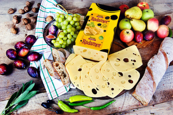 Radamer to prawdziwa ikona wśród serów żółtych. Pierwszy polski ser z dziurami – wyprodukowany z aż 10 litrów mleka na każdy 1 kg sera – dojrzewa spokojnie, by zyskać swój charakterystyczny, delikatnie słodki smak z nutą orzecha. Powstaje wyłącznie w zakładach Spomlek – na bazie sprawdzonej receptury, z szacunkiem do serowarskiej tradycji.