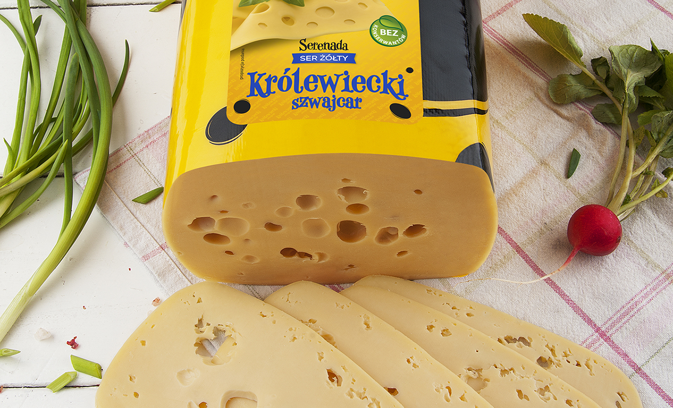 Ser żółty Szwajcar Królewiecki to wyjątkowy wyrób serowarski należący do rodziny serów dojrzewających. Charakteryzuje się delikatnością i subtelnym smakiem orzechowym. Konsumenci cenią go za wielozadaniowość, bo Szwajcar Królewiecki doskonale nadaje się zarówno do dań na ciepło, np. zapiekanek, jak i do kanapek i sałatek, jako wyśmienity dodatek.